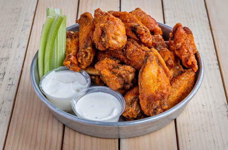 Jumbo chicken wings tossed in your favorite sauce. Served with a side of blue cheese.