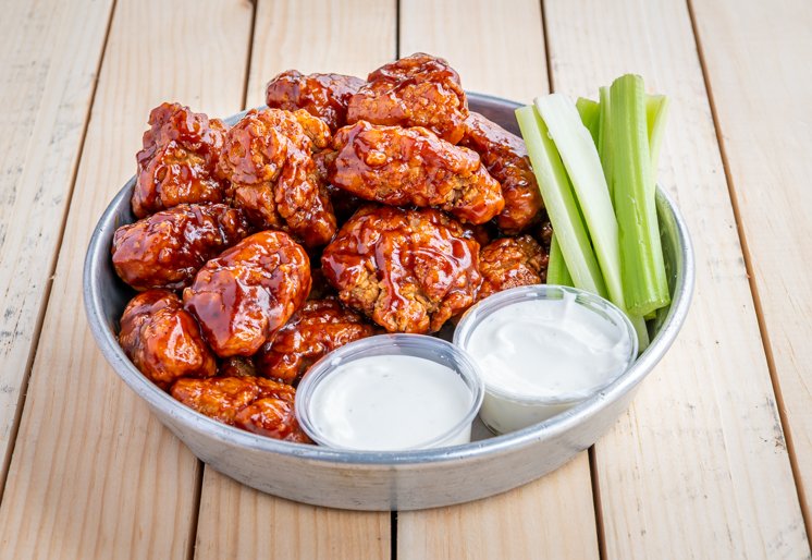 Boneless popcorn chicken bites tossed in your favorite sauce. Served with a side of bleu cheese.